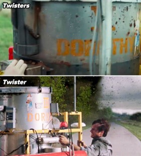 The best part was the very subtle nod to one of the most iconic moments in Twister, the flying cow. It’s toward the end of the movie in the final tornado. You must look really hard, but it’s there!